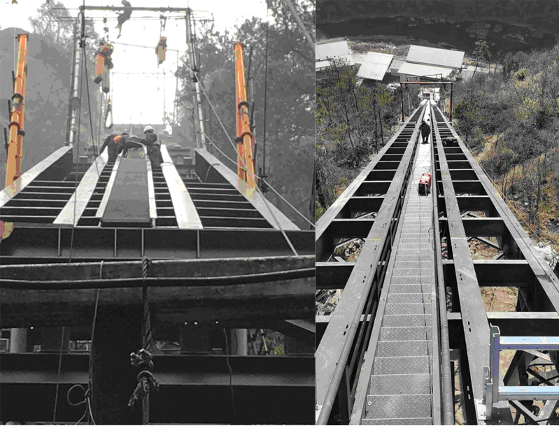 浙江新昌韓妃江-安嵐酒店項目斜行電梯附屬鋼結構及基礎工程,運行高度250米,每部承重量2噸,2部電梯,每部運行承載人數為26人,于2020年4月20日開工,2021年9月份已竣工運營;